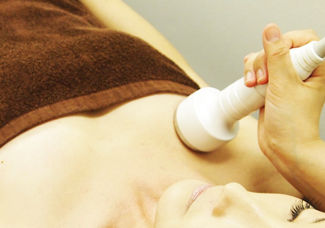 EMSでバストを支えている胸筋を引き上げていきます。